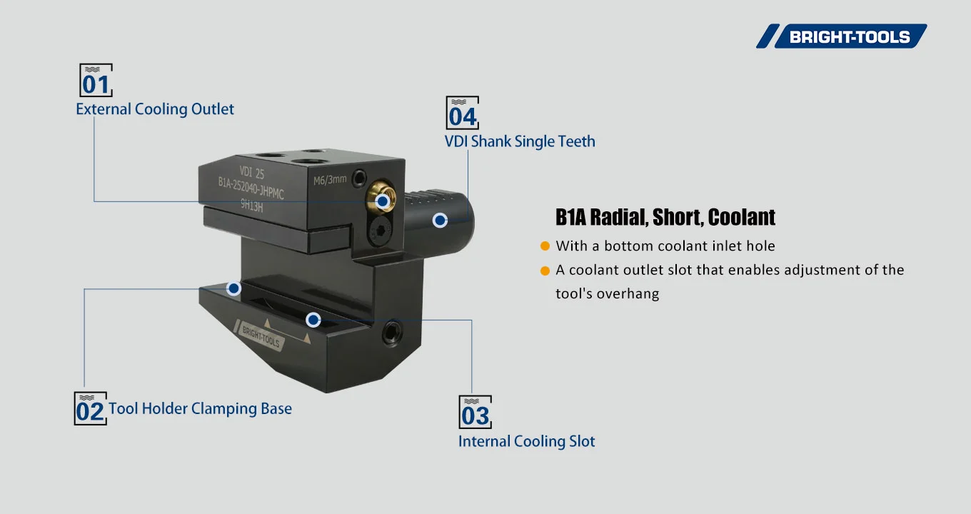 A coolant outlet slot that enables adjustment of the tool's overhang