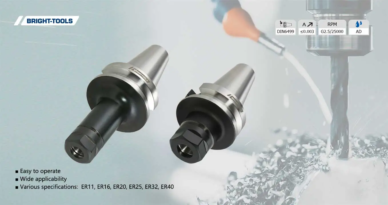BBT-ER tool holder is a commonly used tool holder in machine tool processing. It is composed of a tool holder body and an ER collet. It is mainly used to clamp and fix straight-shank cutting tools such as drills and milling cutters machining.