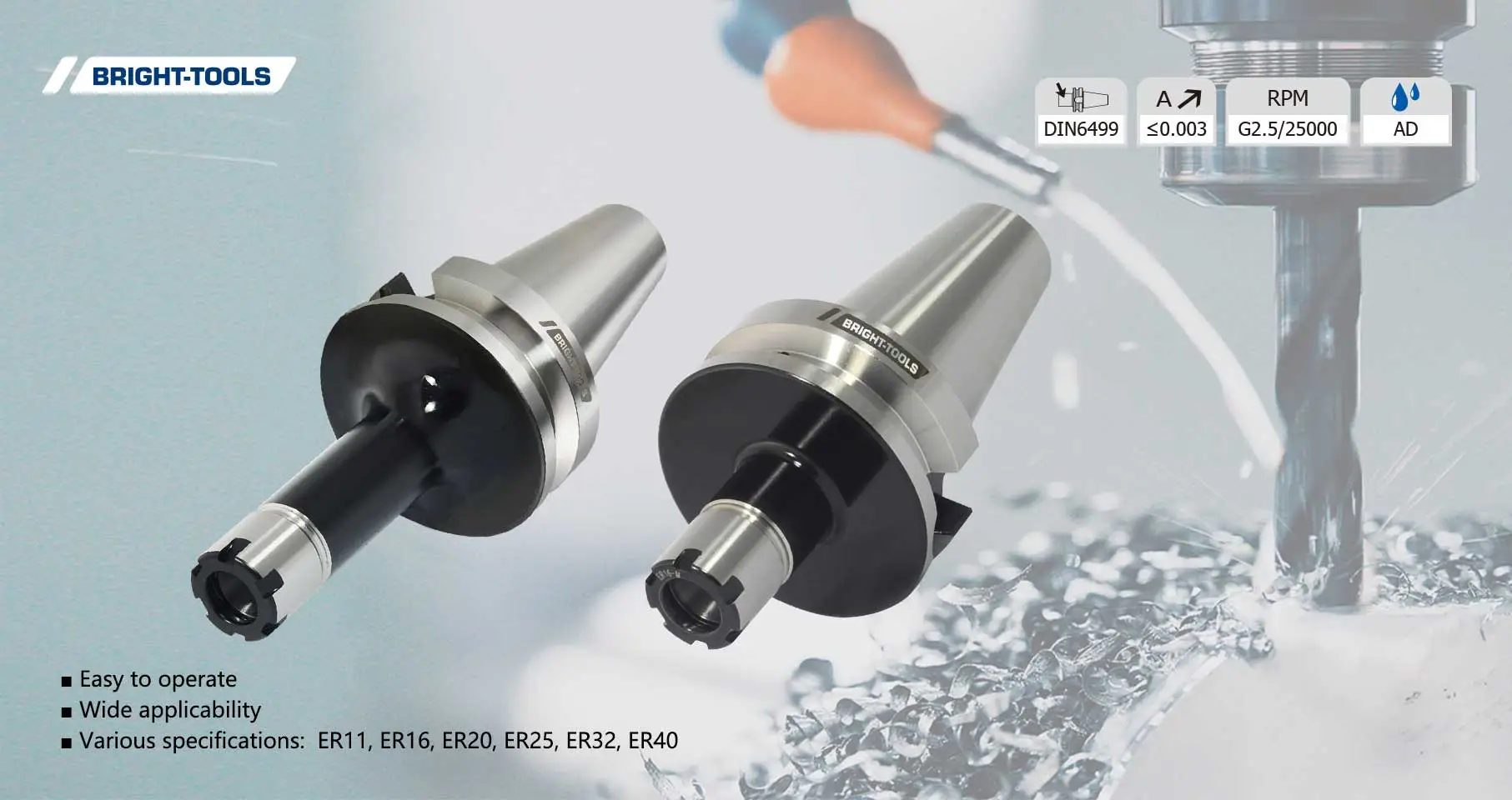 1. Various specifications: ER11, ER16, ER20, ER25, ER32, ER40.