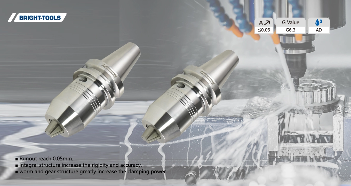BBT CPU Drill chuck , worm and gear structure greatly increase the clamping power. integral structure increase the rigidity and accuracy. Runout reach 0.05mm. The claw use Nitriding process increase the wear resistance and longer tool life.