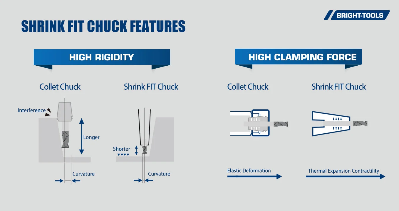 3° slim Integrated shrink-fit chucks with a slim nose can access close to walls and avoid interference problems. can select the ideal holder for your specific workpiece shape and machining conditions, large diameter is better for heavy-duty machining, and a small diameter is better for micro-machining.