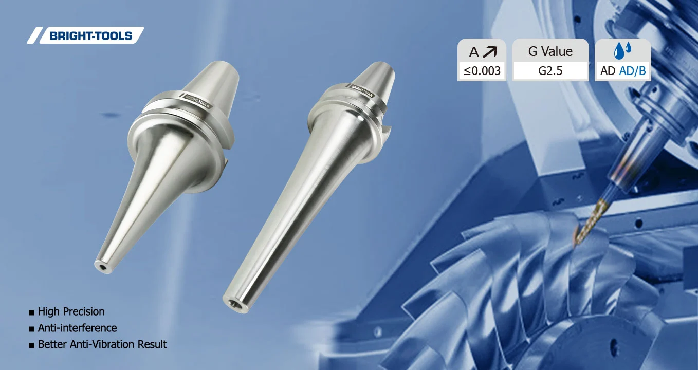 Curved shrink-fit holder with thick root and slim nose, to make sure good rigidity even if the length gets longer. This tool holder performs well during 5-Axis machining which often requires a longer gauge tool holder and cutting tools to avoid interference, also good better for the corner processing of one workpiece.